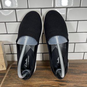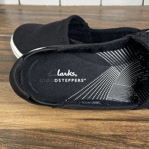 Clarks Cloudsteppers Breeze Step Womens Sz 6.5 Wide Shoes Black Comfort Slip Ons