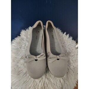 Clarks Cloudsteppers Flats 8.5 Stone Gray Carly Hope Knit Bow