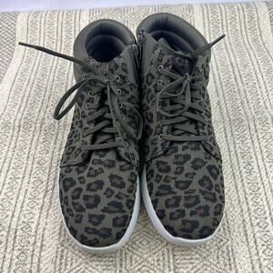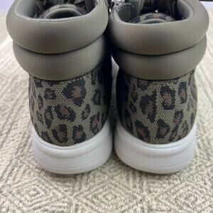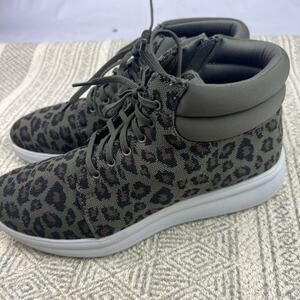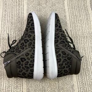 Clarks Cloudsteppers Leopard High Top Sneakers, Olive Green, Knit Fabric, Casual Comfy Zip