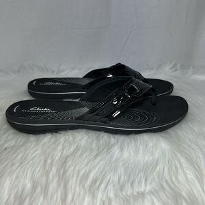 Clarks Cloudsteppers Like New Black Sea Breeze Thong Sandals Sz 9.5