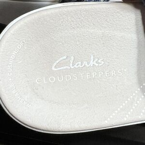 All text noted from photos: "Clarks", "CLOUDSTEPPERS", "WASHABLE", "CUSHIONSOFT"; size tag shows UK 7 1/2, US 10, EU 41 1/2, CN 260, WOMENS/FEMMES