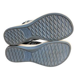 Clarks Cloudsteppers Sandals Womens Size 10 Blue White Striped Slingback Wedge