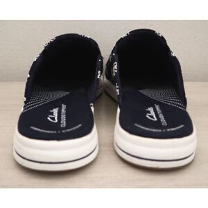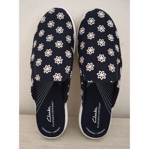 Clarks Cloudsteppers Women 10M Navy Floral Breeze Shore Canvas Slip-On Mules
