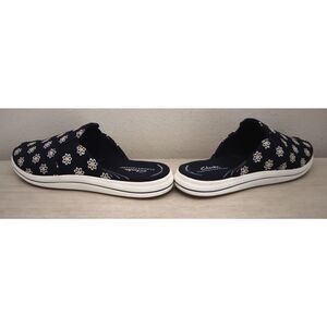 Clarks Cloudsteppers Women Sz 10M Navy Floral Breeze Shore Canvas Slip-On Mules