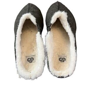 Step into comfort with these Clarks Cloudsteppers slip-on slippers. Perfect for travel or casual wear, these mules feature a round toe shape and a low top shoe shaft style. The outsole is made of rubber for durability, while the lining is made of faux fur for added warmth. These slippers come in a beautiful brown color and are available in US shoe size 10, UK shoe size 7.5, and EU shoe size 41.5. They are made with a blended fabric upper material and a foam insole material for cushioned comfort. No matter what season it is, these slippers are perfect for winter, fall, and spring. Add these Clarks Cloudsteppers slip-on slippers to your collection for a stylish and comfortable option.