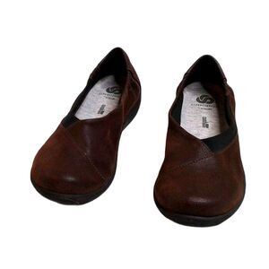 Clarks Cloudsteppers Womens Sillian Jetay Soft Cushion Brown Slip On Loafer Flats Shoes, Size 6.5 in Excellent Condition