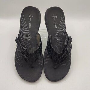 Clarks Cloudsteppers womens 9M Black Patent Brinkley Jazz Sandals