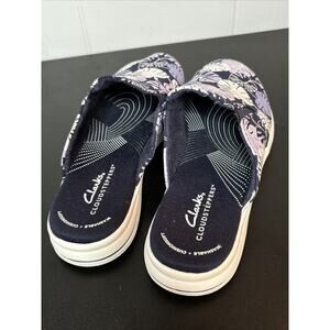Clarks Cloudsteppers women's breeze shore Canvas Slip-on Mules shoes Lavender 7