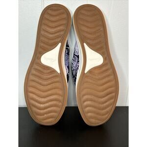 These slip-on mules come in a beautiful lavender color with a leaf pattern and are perfect for travel and casual occasions. The shoes have a fabric lining material and upper material, and the heel height is flat, making them ideal for all-day wear. Get your hands on these Clarks Cloudsteppers slip-on mules and experience the ultimate comfort and style.