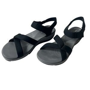 Clarks Cloudsteppers Summer Sandals Women's Size 11 M Black Fabric Sling Back Open Toe