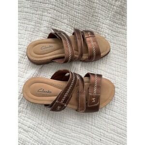 Clarks Collection Adjustable Leather Slide Sandal Size 6.5