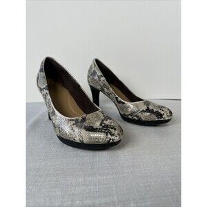Clarks Collection Ambyr Joy Pumps Snakeskin Pattern High Heels Women’s Size 5.5