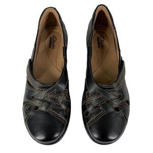 Clarks Collection Black Leather Casual Flats Size 8 M Shoes
