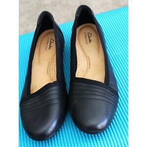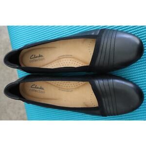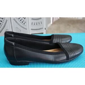EXCELLENT CONDITION. Clarks Collection Black Leather Sara Ballet Flats Shoes Womens 11 Round Toe