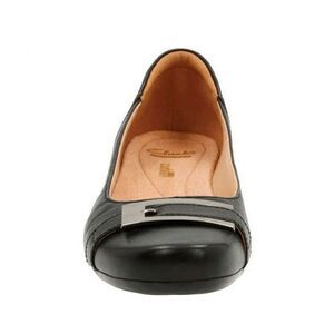 Clarks Collection Blanche West Flat Black Leather Buckle Slip On Shoe Size 5 NEW