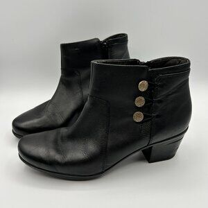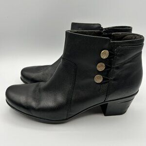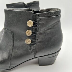 Clarks Collection Boots 9M Black Leather Heeled Ankle Booties Side Zipper