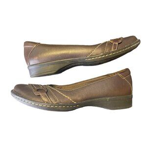 Clarks Collection Brown Leather Slip On Round Toe Shes Sz 7.5