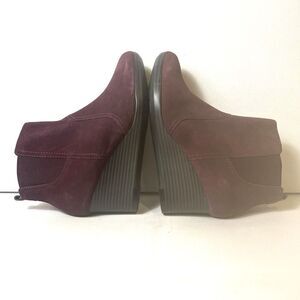 Clarks Collection Burgundy Suede Ankle Bootie Womens 6.5M Wedge Casual Zip Boots