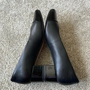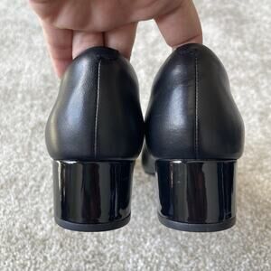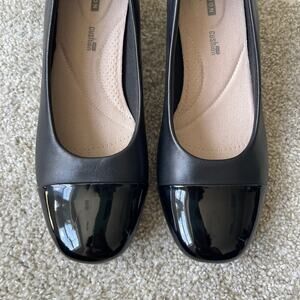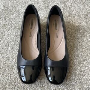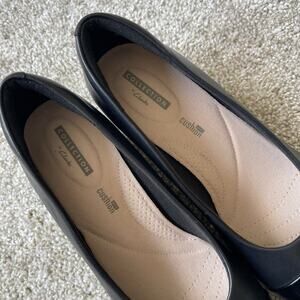 Clarks Collection Cap Toe Block Heel Pumps Black Leather 8.5 M Padded Insole