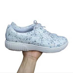 Clarks Collection Caroline Ella Leather Metallic Floral Sneakers Size 8.5 Wide