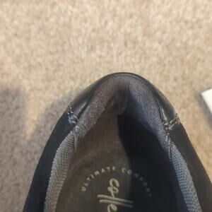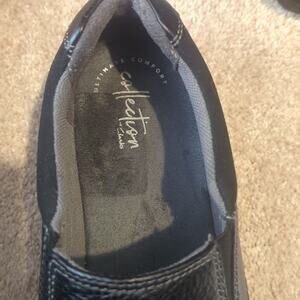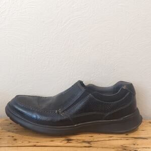 Clarks Collection Cotrell Free Black Oily Leather Pebbled Grain Loafer Men's 11M. Rubber sole. Ortholite footbed with cushion soft technology. Pre-owned, these loafers are in excellent condition.