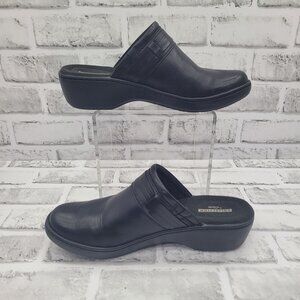 Clark's Collection Delana Hayden Black Leather Slip On Clogs Size 8.5