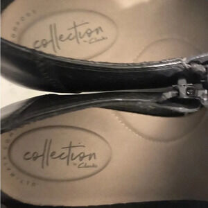 Elevate your style with these Clarks Collection Emslie Warren Soft Cushion Womens Booties. Designed for women, these black leather shoes come in a size 7.5 US and 38 EU. The mid-heel style, with a height of 2-2.9 inches, and block heel style, make them perfect for any occasion.