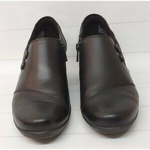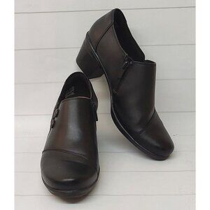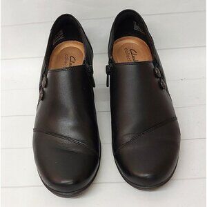 Clarks Collection Emslie Warren Women's 8.5 Slip On Loafer Black Leather Block H