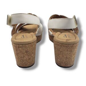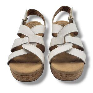 Clarks Collection Giselle Beach Wedge Sandals Womens 11 White Leather Cork