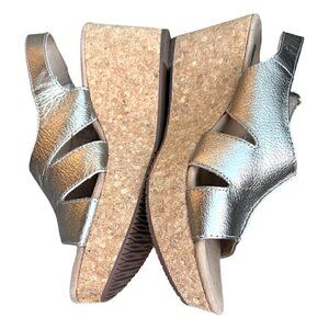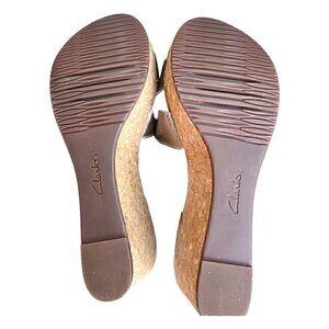 Clarks Collection Gold Metallic Annadel Bari Cork Wedge Sandals Women’s Size 11