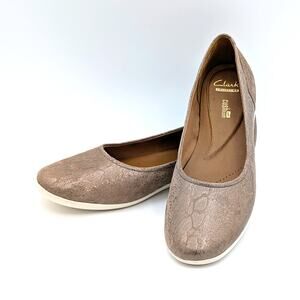 Clarks Collection Helina Alessia Ballet Flats 10 Leather Snakeskin Neutral Chic