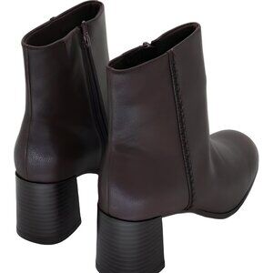 Elevate your look with chic ankle boots showcasing rich brown leather and a sleek profile. Side zips make on/off effortless.