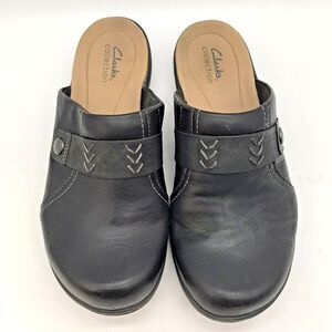 Clarks Collection Laurieann Ella Clogs Women's 9W Black Leather Slip-On Shoes