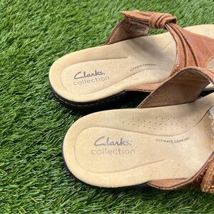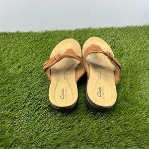 Clarks Collection Laurieann Rae Floral Toe-Post Sandal Brown Sheen Leather 6.5W