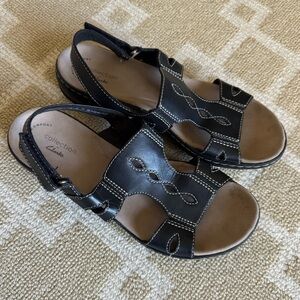 Clarks Collection Leather Comfort Sandals Brown Stitch Slingback Shoes Size 7