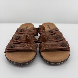 Clarks Collection Leisa Cacti Brown Leather Strap Sandals Slides Womens 7.5