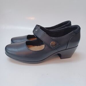 Clarks Collection Mary Jane Heels Black Leather Pumps Comfort Shoes Womens 8