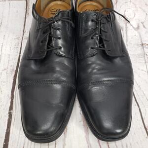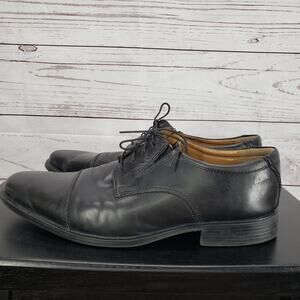 Clarks Collection Men's Soft Cushion Black Leather Lace Up Tilden Cap Oxford Shoes Size 11. Leather Upper. Pre-owned in good condition.