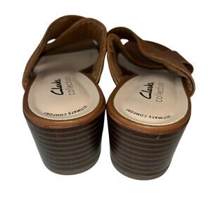 Clarks Collection Mules Criss Cross Leather Block Heel Slides Brown Size