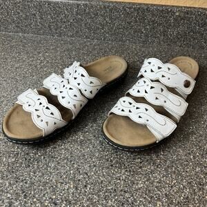 Clarks Collection Sandals Comfort Casual White Leather Slip On Open Toe Flat Women's Size 10 M