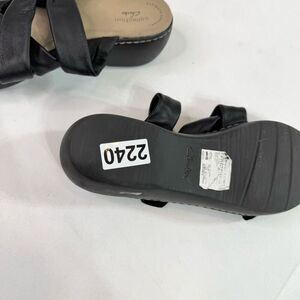 Clarks Collection Sandals Shoes Womens 8.5 Black Leather Slide Hook Loop Wedge
