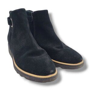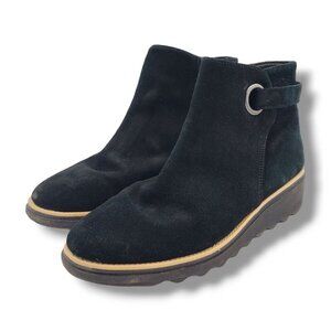 Clarks Collection Sharon Spring Boot Womens 7.5 Black Suede Wedge