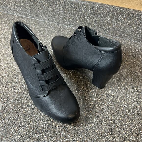 Clarks Collection Shoes Comfort Block Heel Women's Size 6.5 M Black Leather Classic Pump