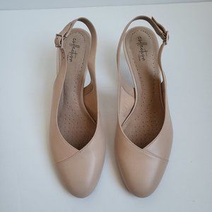 Clarks Collection Shoes Sandals Heels Womens Sz 11M Adjustable Sling Back Beige
