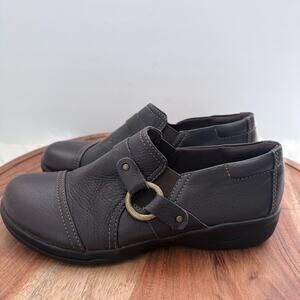 Clarks Collection Shoes Womens Brown Leather Slip Size 5.5 Comfort Insole