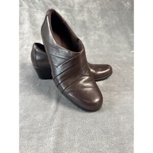 Clarks Collection Slip-On Ankle Boot Brown Leather Side Zip Womens 8M Comfort