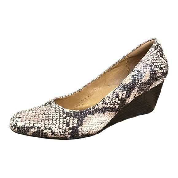 Clark's Collection Soft Cushion Beige & Brown Snake Print Brielle Wedge Pumps 9