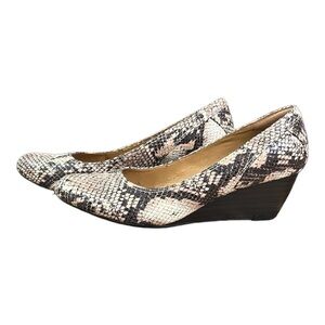 Clark's Collection Soft Cushion Beige & Brown Snake Print Brielle Wedge Pumps Size 9