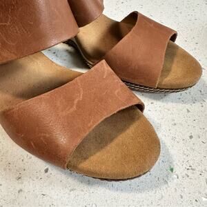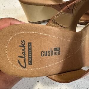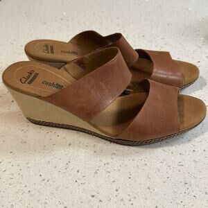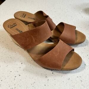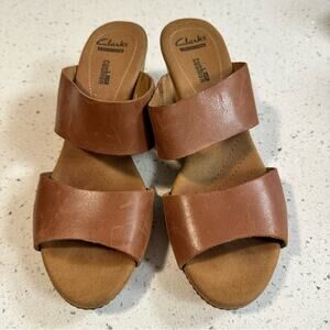 Clarks Collection Soft Cushion Leather Wedge Sandals Slides Brown Size 11