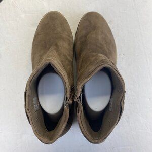 Clarks Collection Suede Ankle boots with Bow Sharon Salon Taupe,Size 11M Zipper